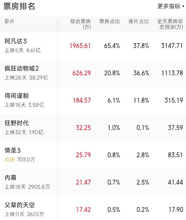 上映5天累计票房4.61亿,比同档期电影的单日票房皆要高,排片占比也高达37.8%。