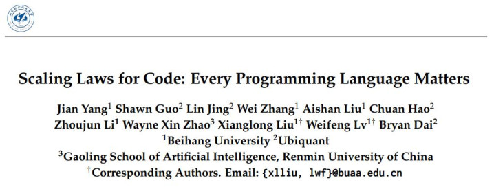 北航、东谈主大和九坤投资共同撰写的论文 《Scaling Laws for Code: Every Programming Language Matters》 整理而成。