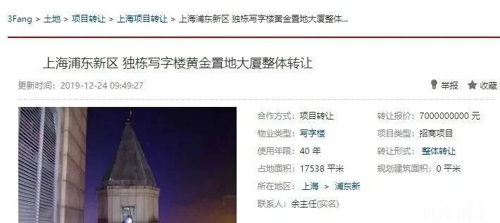 业主方不胜永久牵扯,决定举座出售黄金置地大厦,意向报价低至70亿元东说念主民币。